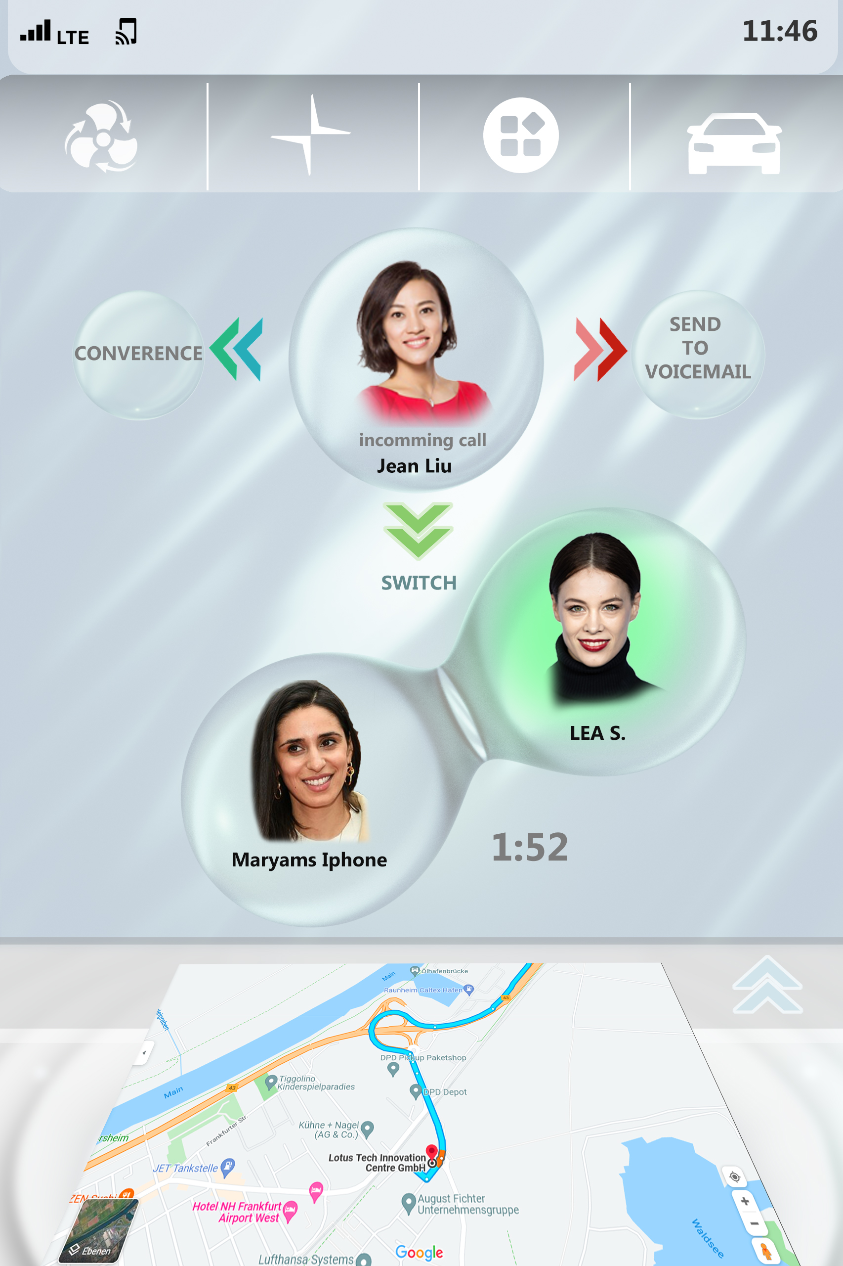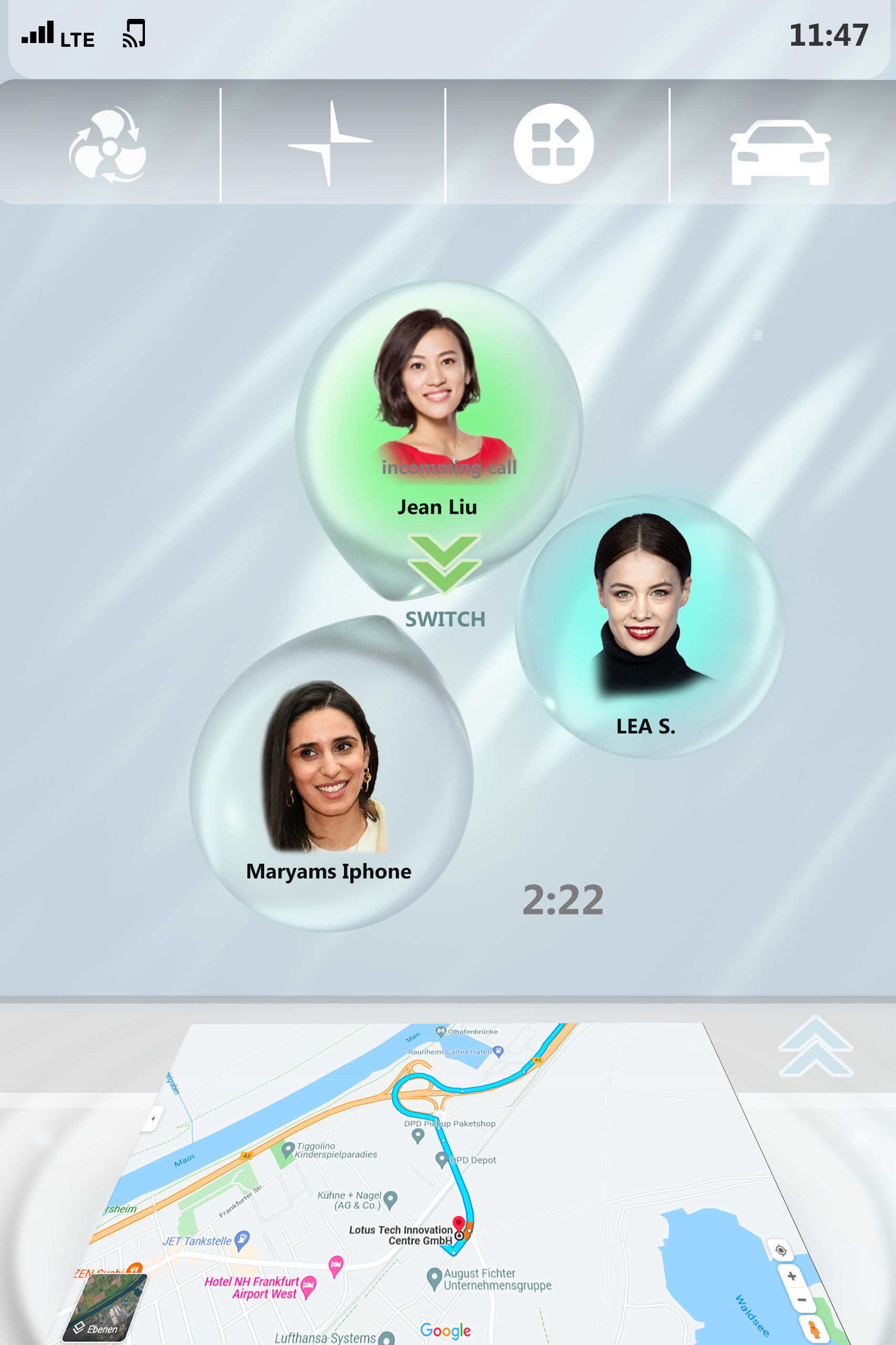 visualization of the usecase "second incomming call" in the vehicle instrument cluster.